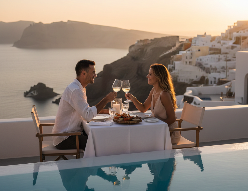 Float above the Aegean in the world’s most iconic escape. From private cave villas with infinity pools to golden sunsets over blue-domed churches, Santorini is where love finds its reflection in the sea. Effortless, elegant, and purely cinematic.